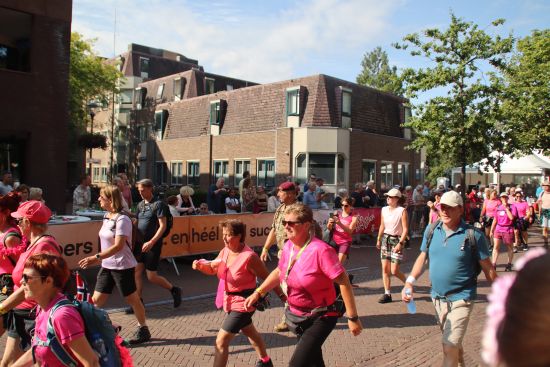 Uitslapen vandaag dus en later met de trein richting Wijchen. Formeel was ik nu echt uitgevallen, lees niet gestart. Normaal zou ik al snel terugkomen op de beslissing om te stoppen, maar dit jaar niet. De gedachte om toch te starten kwam niet meer in mij op. Ook mijn broer sliep uit. Daarna ontbijten en richting het station lopen. En wachten op de trein naar Wijchen. Van eerdere Vierdaagse wist ik dat het niet ver lopen was naar het parcours. We liepen langst de molen en zagen dat het al aardig druk was. Maar ik wist dat het nog drukker zou worden met wandelaars want tussen 11 uur en half een komen de meeste wandelaars voorbij. We liepen naar links over de stoep in de richting van de wandelaars. Daar heb ik afwisselend op een muurtje gezeten en langst de kant gestaan. En het werd inderdaad druk met wandelaars. Een man aan de kant irriteerde zich wel aan het feit dat er mensen voor hem gingen staan. Hij was bewust in de schaduw gaan zitten. Ik kon veel foto’s maken van wandelaars die langskwamen. Deze heb ik in een aantal blogs verwerkt. Al deed het wel pijn dat ik was moeten stoppen, wist ik van binnen wel dat het besluit goed was. En we bleven kijken naar de vele wandelaars die nog langskwamen. Iets na de middag besloten we weer richting Nijmegen te rijden. Hier konden we gaan kijken naar de aankomst tijdens de Roze Woensdag.